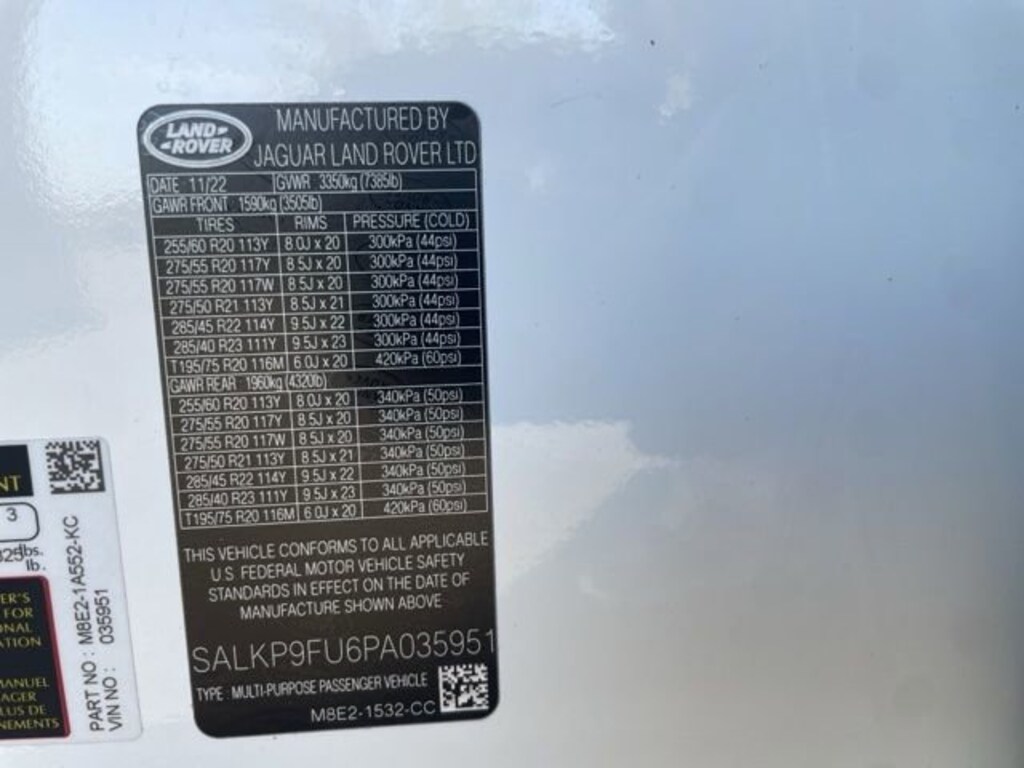 Clean CARFAX. CARFAX One-Owner. Certified. Fuji White 2023 LAND ROVER Range Rover SE AWD ZF 8-Speed Automatic 3.0L I6 Turbocharged 1-OWNER, CLEAN CARFAX, LOCAL TRADE IN, BACK UP CAMERA, LEATHER, HEATED SEATS, COOLED SEATS, PANORAMIC SUNROOF, 4-WHEEL DRIVE, SMART KEY W PUSH BUTTON START, PRE-COLLISION SYSTEM W PEDESTRIAN DETECTION, DYNAMIC RADAR CRUISE CONTROL, LANE DEPARTURE ALERT W STEERING ASSIST, BLIND SPOT MONITOR W REAR CROSS TRAFFIC ALERT, APPLE CARPLAY & ANDROID AUTO, POWER LIFTGATE, MEMORY SEAT, HOMELINK GARAGE DOOR TRANSMITTER, ADJUSTABLE AUTOMATIC RIDE CONTROL, 3D SURROUND CAMERA, FRONT, LEFT SIDE, RIGHT SIDE - CAMERA, BLACK CONTRAST ROOF, TECHNOLOGY PACK, SHADOW EXTERIOR PACK, HEATED STEERING WHEEL, 23" DIAMOND TURNED WHEELS, 1-OWNER, CLEAN CARFAX, MUST SEE!, Ebony/Ebony w/Perforated Windsor Leather Seat Trim, 15 Speakers, 20-Way Heated Electric Front Bucket Seats, ABS brakes, Adaptive suspension, Auto High-beam Headlights, Auto tilt-away steering wheel, Auto-dimming Rear-View mirror, Auto-leveling suspension, Automatic temperature control, ClearSight Interior Rear View Mirror, Compass, Domestic Plug Socket, Electronic Stability Control, Exterior Parking Camera Rear, Four wheel independent suspension, Front dual zone A/C, Genuine wood console insert, Genuine wood door panel insert, Head-Up Display, Heated front seats, Heated rear seats, Illuminated entry, Illuminated Metal Treadplates w/Brand-Name Script, Laminated Front & Rear Side Glass, Navigation System, Navigation system: Pivi Pro Connected Navigation, Perforated Windsor Leather Seat Trim, Power moonroof, Power passenger seat, Premium audio system: Meridian, Premium Upgrade Interior Pack, Rain sensing wipers, Rear air conditioning, Split folding rear seat, Steering wheel memory, Steering wheel mounted A/C controls, Steering wheel mounted audio controls, SV Bespoke Carpet Mats, SV Bespoke Full Extended Leather Upgrade, Technology Pack, Traction control, Turn signal indicator mirrors, Wireless Apple CarPlay/Wireless Android Auto.