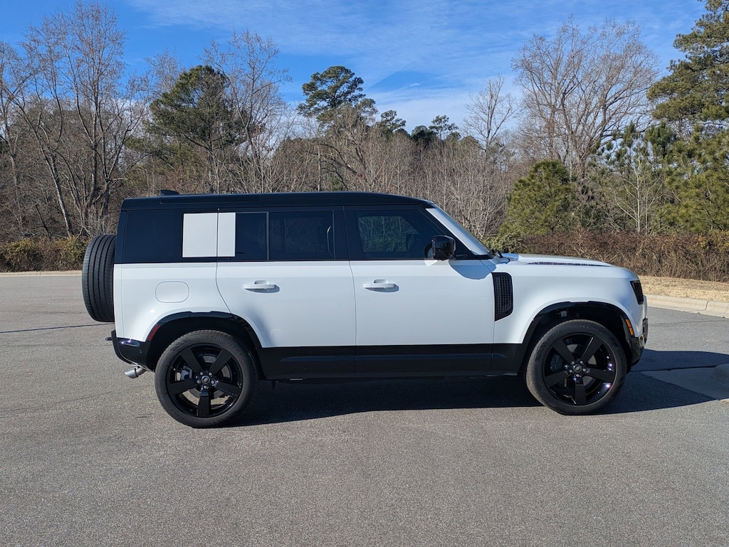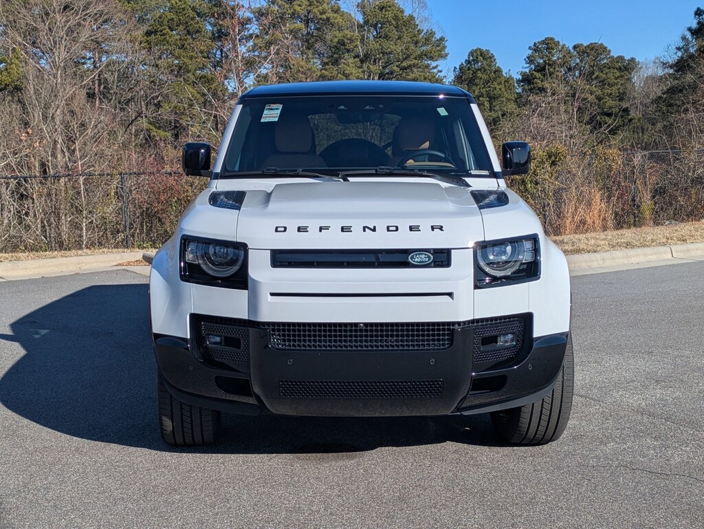 Clean CARFAX. Certified. Fuji White 2025 LAND ROVER Defender 110 X-Dynamic SE AWD 8-Speed Automatic V8 Supercharged 1-OWNER, CLEAN CARFAX, SERVICED HERE, OWNED BY DEALER, LEATHER, HEATED SEATS, PANORAMIC SUNROOF, NAVIGATION, 4-WHEEL DRIVE, SMART KEY W PUSH BUTTON START, DYNAMIC RADAR CRUISE CONTROL, LANE DEPARTURE ALERT W STEERING ASSIST, BLIND SPOT MONITOR W REAR CROSS TRAFFIC ALERT, APPLE CARPLAY & ANDROID AUTO, MEMORY SEAT, THREE-ZONE CLIMATE CONTROL, AIR QUALITY SENSOR, CABIN AIR PURIFICATION PLUS, CLEARSIGHT REAR VIEW MIRROR, 22" STYLE 5098 5-SPOKE, GLOSS BLACK WHEELS, HEAD-UP DISPLAY, FRONT CENTRE CONSOLE REFRIGERATOR, EXTENDED BLACK EXTERIOR PACK, 1-OWNER, CLEAN CARFAX, MUST SEE!, 14-Way Heated and Cooled Electric Memory Front Seats, 15 Speakers, ABS brakes, Adaptive suspension, Advanced Tow Assist, Auto High-beam Headlights, Auto tilt-away steering wheel, Auto-dimming Rear-View mirror, Compass, Electronic Stability Control, Extended Leather Upgrade, Exterior Parking Camera Rear, Front dual zone A/C, Fully automatic headlights, Garage door transmitter: HomeLink, Heated steering wheel, Illuminated entry, Leather Gearshift, Leather Wrapped Steering Wheel with PU Driver Airbag, Memory seat, Navigation system: Connected Navigation PIVI Pro, Premium Upgrade Interior Pack, Radio: Meridian Surround Sound System, Rain sensing wipers, Steering wheel memory, Steering wheel mounted audio controls, Tow Hitch Receiver, Towing Pack, Traction control.