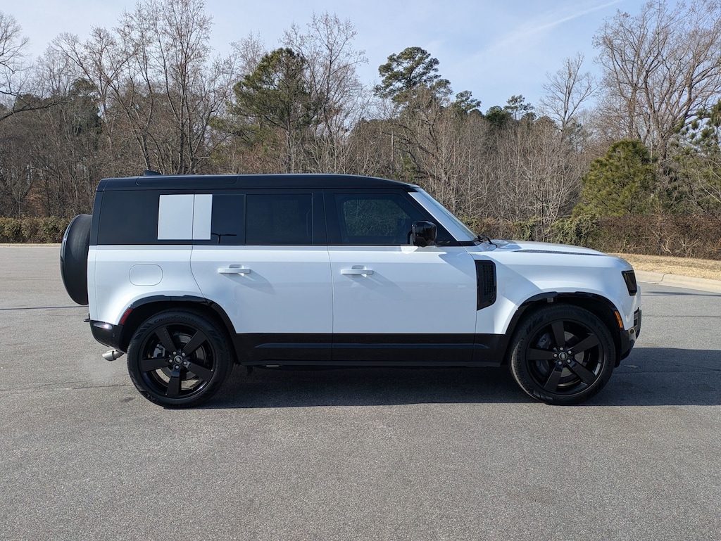 Clean CARFAX. Certified. Fuji White 2025 LAND ROVER Defender 110 X-Dynamic SE AWD 8-Speed Automatic V8 Supercharged 1-OWNER, CLEAN CARFAX, LOCAL TRADE IN, OWNED BY DEALER, BACK UP CAMERA, LEATHER, HEATED SEATS, COOLED SEATS, PANORAMIC SUNROOF, VERY LOW MILES, 4-WHEEL DRIVE, SMART KEY W PUSH BUTTON START, DYNAMIC RADAR CRUISE CONTROL, LANE DEPARTURE ALERT W STEERING ASSIST, BLIND SPOT MONITOR W REAR CROSS TRAFFIC ALERT, APPLE CARPLAY & ANDROID AUTO, MEMORY SEAT, HOMELINK GARAGE DOOR TRANSMITTER, ADJUSTABLE AUTOMATIC RIDE CONTROL, AERIAL VIEW CAMERA SYSTEM, FRONT & REAR PARKING SENSORS, HEATED LEATHER STEERING WHEEL, 1-OWNER, CLEAN CARFAX, MUST SEE!, 12-Way Heated and Cooled Electric Memory Front Seats, 15 Speakers, ABS brakes, Adaptive suspension, Apple CarPlay & Android Auto, Auto High-beam Headlights, Auto tilt-away steering wheel, Automatic temperature control, Compass, Electronic Stability Control, Exterior Parking Camera Rear, Four wheel independent suspension, Front dual zone A/C, Fully automatic headlights, Garage door transmitter: HomeLink, Heated front seats, Heated steering wheel, Illuminated entry, Memory seat, Power moonroof, Power passenger seat, Radio: Meridian Surround Sound System, Rain sensing wipers, Steering wheel memory, Steering wheel mounted audio controls, Traction control, Ventilated front seats, Wheels: 20" Gloss Sparkle Silver Style 5098.