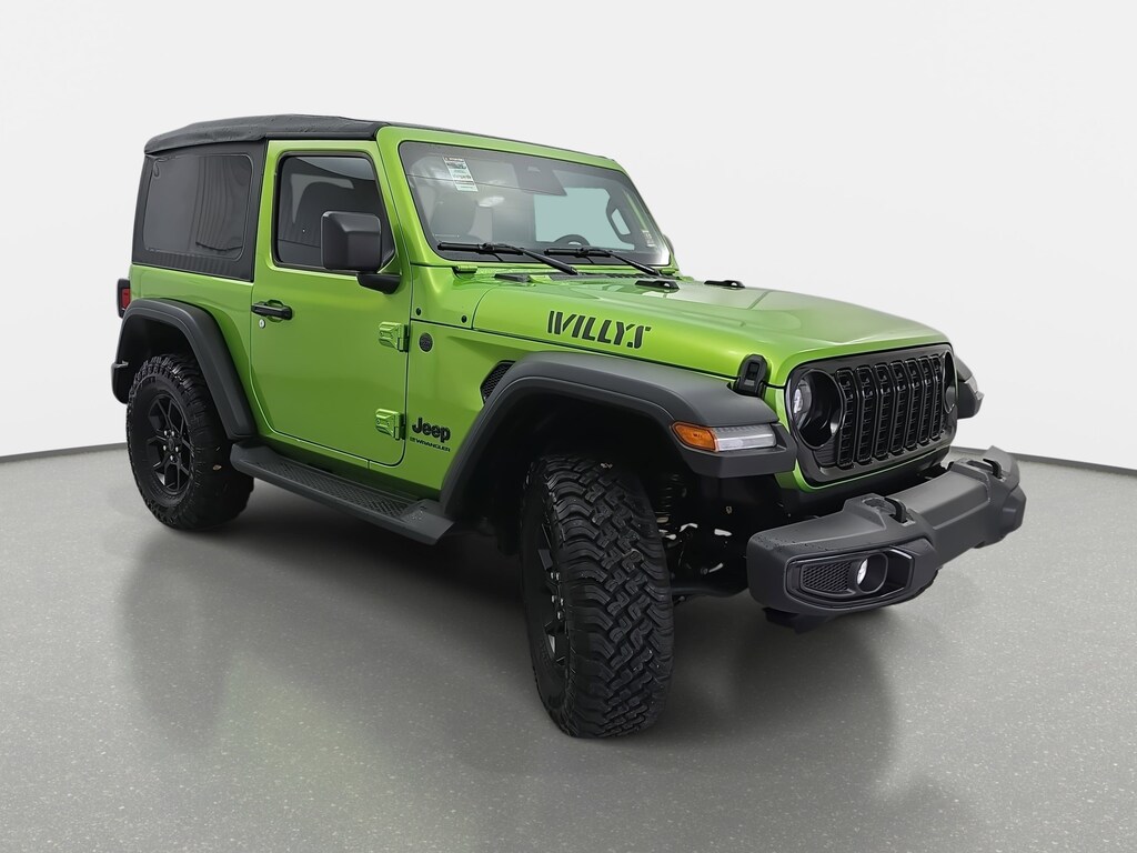 Mojito Clearcoat 2025 Jeep Wrangler Willys 4WD 8-Speed Automatic 2.0L I4 DOHC 4-Wheel Drive Swing Gate Decal, 4.10 Rear Axle Ratio, 7 & 4 Pin Wiring Harness, 97 MPH Vehicle Max Speed Calibration, Advanced Brake Assist, Automatic Headlamps, Auxiliary Switches, Black Grille, Class II Receiver Hitch, Conventional Differential Front Axle, Corning Gorilla Glass, Dana M210 Wide HD Tube Front Axle, Dana M220 Wide Rear Axle, Daytime Running Lamps LED Accents, Deep Tint Sunscreen Windows, E-Locker Rear Axle, Enhanced Adaptive Cruise Control, Front LED Fog Lamps, Full Speed Forward Collision Warning Plus, Injection Molded Black Rear Bumper, LED Premium Reflector Headlamps, Mold In Color Bumper w/Gloss Black, Molded in Color Rubicon Highline Flare, MOPAR All-Weather Floor Mats, Off-Road Plus Mode, Power Heated Mirrors, Premium Wrapped Steering Wheel, Quick Order Package 22W Willys, Security Alarm, Sun Visors w/Illuminated Vanity Mirrors, Wheels: 17" x 7.5" Painted Black, Willy's Suspension, Willys Hood Decal.