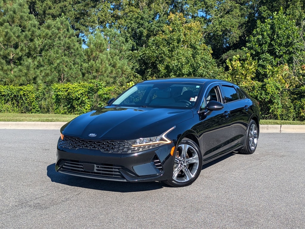 Ebony Black 2021 Kia K5 EX FWD 8-Speed Automatic 1.6L I4 DGI LOCAL TRADE IN, BACK UP CAMERA, LEATHER, HEATED SEATS, COOLED SEATS, PANORAMIC SUNROOF, SMART KEY W PUSH BUTTON START, APPLE CARPLAY & ANDROID AUTO, HIGHWAY DRIVING ASSIST, BOSE PREMIUM AUDIO, MUST SEE TO APPRECIATE!, 10-Way Power Passenger Seat, ABS brakes, Auto High-beam Headlights, Automatic temperature control, Electronic Stability Control, EX Ash Blue Color Package, EX Premium Package, Forward Collision Avoidance-Assist - Cyclist, Forward Collision Avoidance-Assist - Junction Turn, Four wheel independent suspension, Front dual zone A/C, Heated front seats, Heated Steering Wheel, Highway Driving Assist, Illuminated entry, LED Rear Combi Lamps, Memory Driver's Seat & Outside Mirrors, Navigation-Based Smart Cruise Control - Curve, Outside Mirrors w/LED Turn Signals, Parking Collision Avoidance-Assist - Reverse, Power Child Lock, Power moonroof, Radio: AM/FM/SiriusXM Bose Premium Audio System, Safe Exit Assist w/Lock, Smart Cruise Control w/Stop & Go, Smart Key w/ Push Button and Remote Start, Split folding rear seat, Steering wheel mounted audio controls, Traction control, Variably intermittent wipers, Ventilated front seats, Wheels: 7.5J x 18" Gray Machined Finish Alloy.
