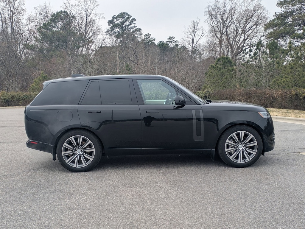 Santorini Black Metallic 2023 LAND ROVER Range Rover SE AWD ZF 8-Speed Automatic 4.4L V8 Twin Turbocharged LOCAL TRADE IN, BACK UP CAMERA, LEATHER, HEATED SEATS, COOLED SEATS, PANORAMIC SUNROOF, NAVIGATION, 4-WHEEL DRIVE, SMART KEY W PUSH BUTTON START, PRE-COLLISION SYSTEM W PEDESTRIAN DETECTION, DYNAMIC RADAR CRUISE CONTROL, LANE DEPARTURE ALERT W STEERING ASSIST, BLIND SPOT MONITOR W REAR CROSS TRAFFIC ALERT, APPLE CARPLAY & ANDROID AUTO, POWER LIFTGATE, MEMORY SEAT, HOMELINK GARAGE DOOR TRANSMITTER, 4-CORNER AUTO-LEVELING SUSPENSION, ADJUSTABLE AUTOMATIC RIDE CONTROL, FRONT & REAR PARKING SENSORS, 3D SURROUND CAMERA, FRONT, LEFT SIDE, RIGHT SIDE - CAMERA, SHADOW EXTERIOR PACK, HEATED STEERING WHEEL, CLEAN CARFAX, MUST SEE!, Perlino/Perlino w/Perforated Windsor Leather Seat Trim, ABS brakes, Adaptive suspension, Auto High-beam Headlights, Auto tilt-away steering wheel, Auto-dimming Rear-View mirror, Auto-leveling suspension, Automatic temperature control, Compass, Electronic Stability Control, Exterior Parking Camera Rear, Front dual zone A/C, Genuine wood console insert, Genuine wood door panel insert, Heated front seats, Heated rear seats, Illuminated entry, Illuminated Metal Treadplates w/Brand-Name Script, Laminated Front & Rear Side Glass, Memory seat, Navigation system: Pivi Pro Connected Navigation, Power driver seat, Power moonroof, Power passenger seat, Premium Upgrade Interior Pack, Radio: Meridian Sound System, Rain sensing wipers, Rear air conditioning, Split folding rear seat, Steering wheel mounted A/C controls, Steering wheel mounted audio controls, SV Bespoke Carpet Mats, SV Bespoke Full Extended Leather Upgrade, Traction control, Turn signal indicator mirrors, Wheels: 22" Diamond Turned w/Gloss Dk Gry Contrast, Wireless Apple CarPlay/Wireless Android Auto.