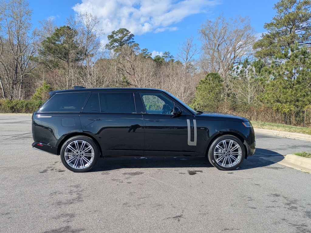 Clean CARFAX. CARFAX One-Owner. Certified. Santorini Black Metallic 2025 LAND ROVER Range Rover SE LWB AWD ZF 8-Speed Automatic 3.0L I6 Turbocharged 1-OWNER, CLEAN CARFAX, LOCAL TRADE IN, BACK UP CAMERA, LEATHER, HEATED SEATS, COOLED SEATS, PANORAMIC SUNROOF, 4-WHEEL DRIVE, SMART KEY W PUSH BUTTON START, PRE-COLLISION SYSTEM W PEDESTRIAN DETECTION, DYNAMIC RADAR CRUISE CONTROL, LANE KEEP ASSIST LANE DEPARTURE WARNING, APPLE CARPLAY & ANDROID AUTO, POWER LIFTGATE, MEMORY SEAT, HOMELINK GARAGE DOOR TRANSMITTER, AERIAL VIEW CAMERA SYSTEM, FRONT & REAR PARKING SENSORS, 3D SURROUND CAMERA, FRONT, LEFT SIDE, RIGHT SIDE - CAMERA, CLEARSIGHT INTERIOR REAR VIEW MIRROR, SV BESPOKE WOOD AND LEATHER STEERING WHEEL, GLOSS GRAND BLACK VENEER, 1-OWNER, CLEAN CARFAX, MUST SEE!, Perlino/Perlino w/Perforated Semi-Aniline Leather Seat Trim, 15 Speakers, 3rd row seats: split-bench, ABS brakes, Adaptive suspension, Apple CarPlay & Android Auto, Auto High-beam Headlights, Auto tilt-away steering wheel, Auto-dimming door mirrors, Auto-dimming Rear-View mirror, Auto-leveling suspension, Automatic temperature control, Compass, Electronic Stability Control, Exterior Parking Camera Rear, Front dual zone A/C, Genuine wood console insert, Genuine wood door panel insert, Heated front seats, Heated rear seats, Heated steering wheel, Illuminated entry, Meridian Sound System, Navigation system: Pivi Pro Connected Navigation, Power moonroof, Premium audio system: Meridian, Rain sensing wipers, Rear dual zone A/C, Steering wheel mounted A/C controls, Steering wheel mounted audio controls, Traction control, Ventilated front seats, Ventilated rear seats, Wheels: 23" 10 Split-Spoke DT w/Dark Grey Contrast.