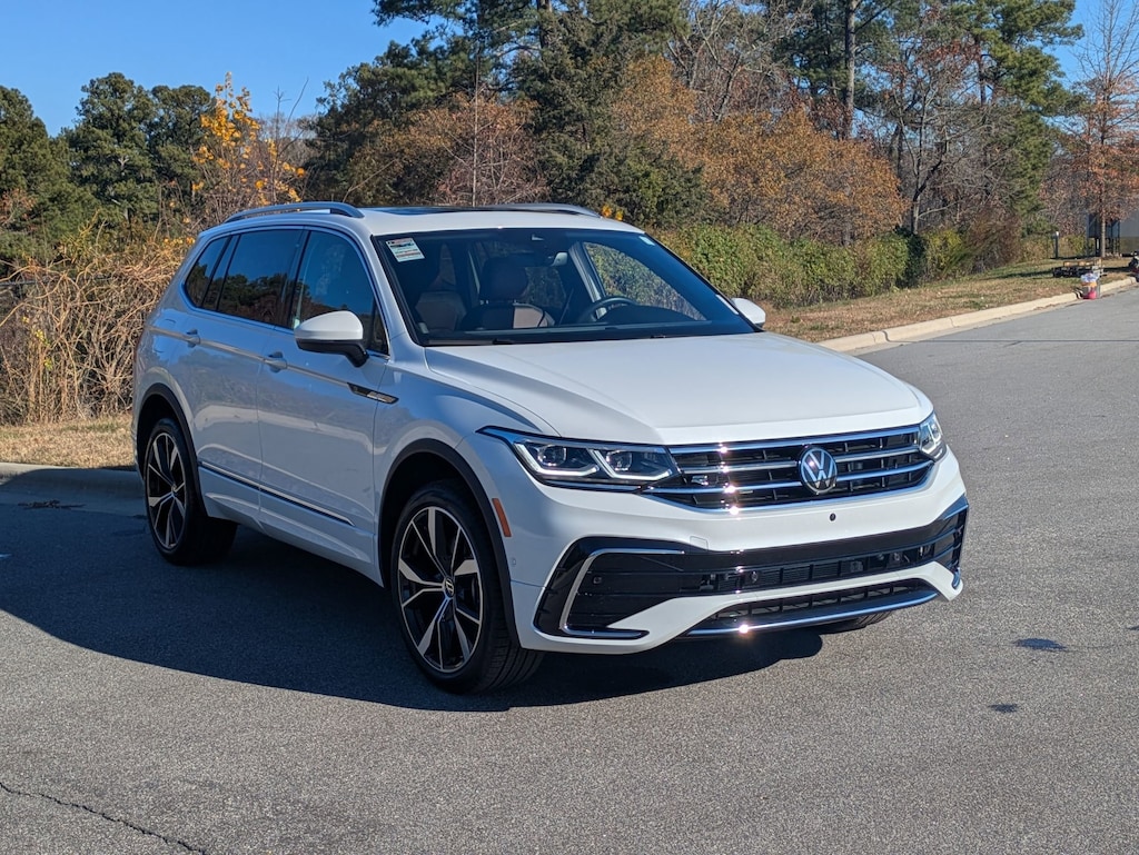 Clean CARFAX. CARFAX One-Owner. Opal White 2024 Volkswagen Tiguan 2.0T SEL R-Line AWD 8-Speed Automatic with Tiptronic 2.0L TSI DOHC AWD, Deep Black Pearl Rear Roof-Edge Spoiler.